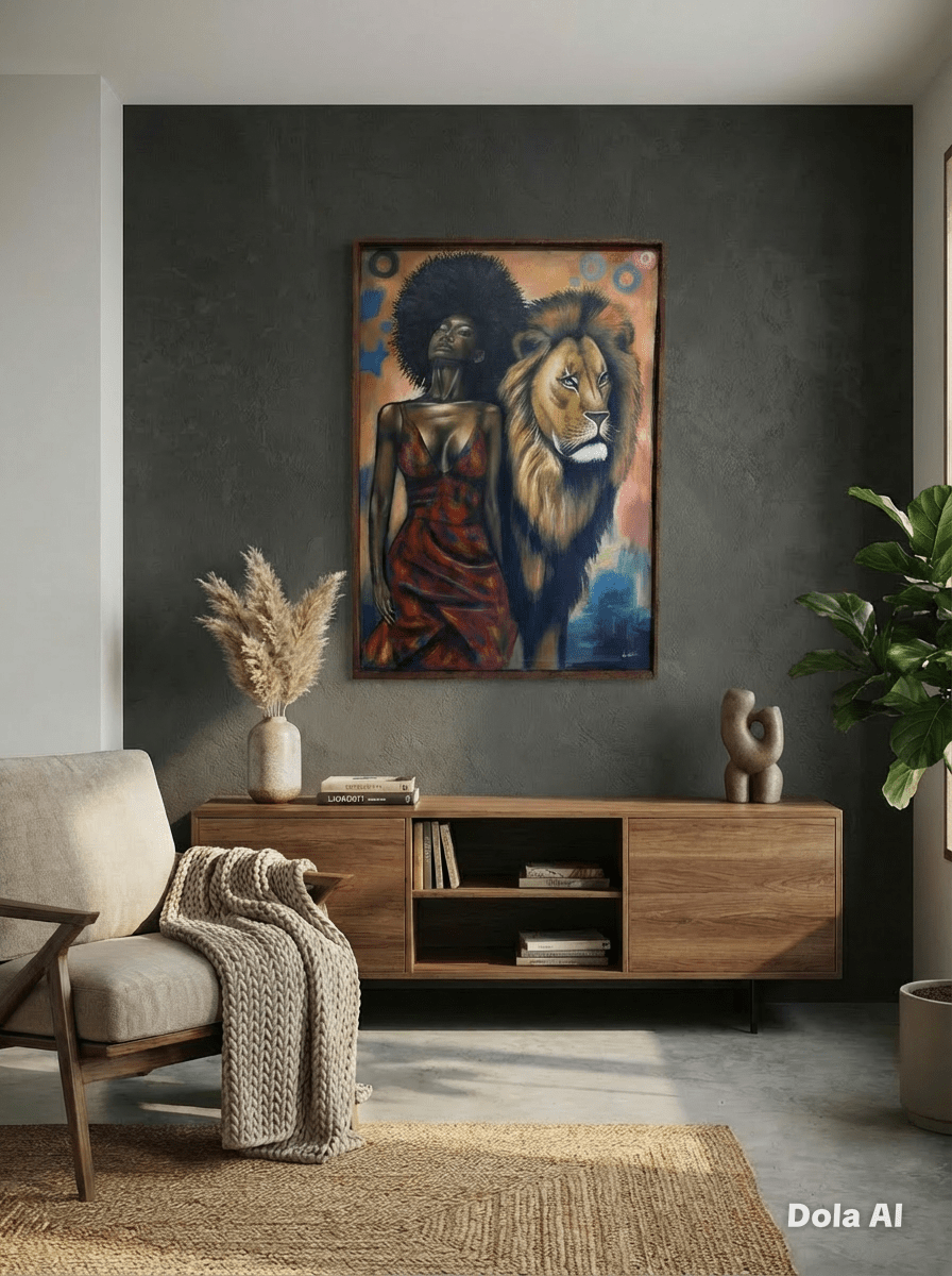 Perfect for a living room, hallway, bedroom, office or boutique space, Lioness Soul brings warmth, confidence and a sophisticated Afrohemian atmosphere to any wall.