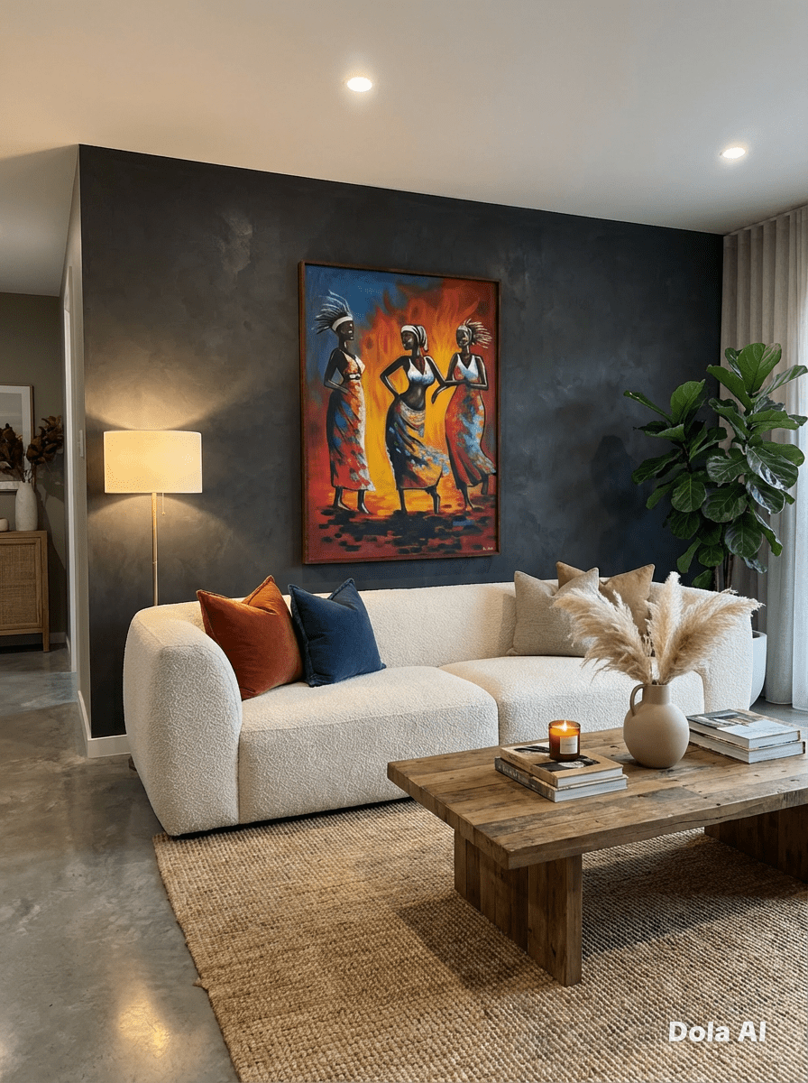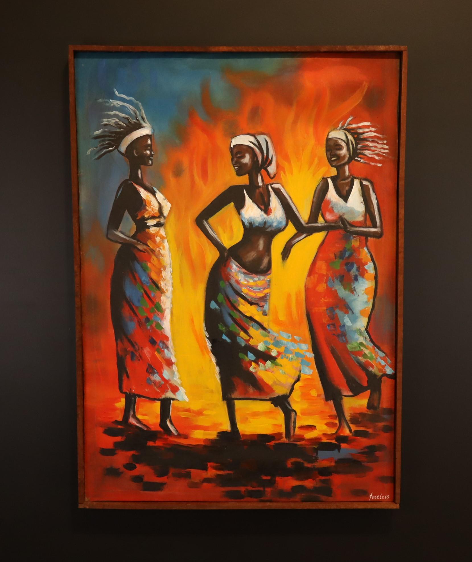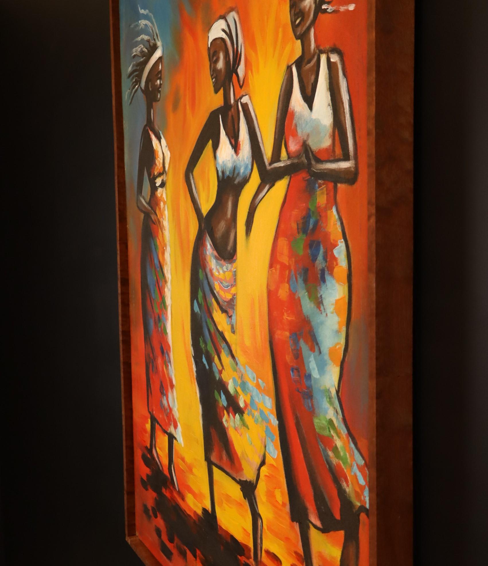 Rhythm of the Flame – African Women Dance Canvas Art is a vibrant African-inspired painting that celebrates movement, joy, sisterhood and cultural expression. Featuring three graceful women dancing against a glowing flame-like background, this artwork captures the energy of celebration and the warmth of shared tradition.